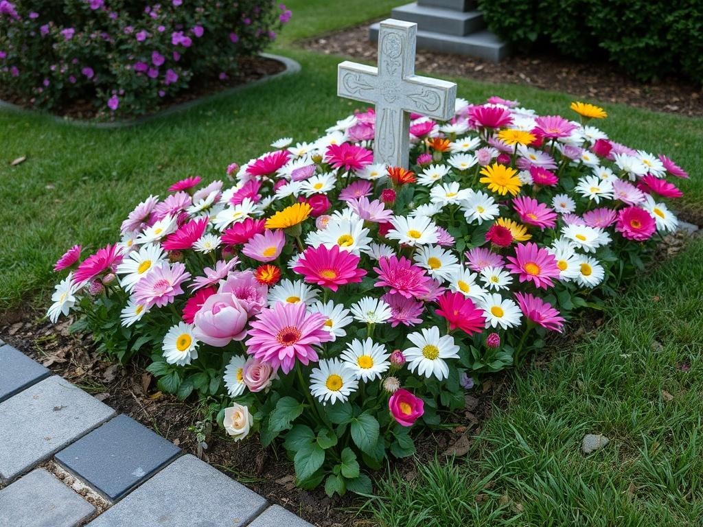 При выборе цветника важно учитывать как общий стиль захоронения, так и пожелания родственников. Наиболее распространены следующие варианты: